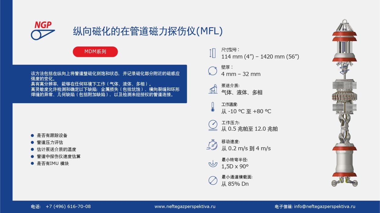 《NGP》有限责任公司开发的高分辨率磁性检测器可以检测和确定诸如:金属损失、横向裂纹和环形焊缝的异常,在确定特征的角度位置和移动距离方面具有最好的特性之一,增加了区分内部和外部缺陷的概率,而且噪音水平低,可以更准确地记录背景腐蚀。