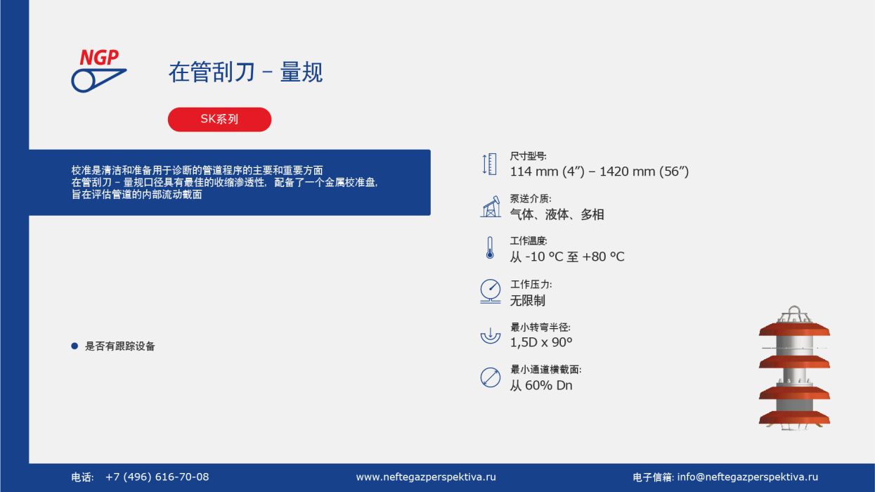 《NGP》有限公司生产的孔型刮刀使其有可能检测到管道中是否存在阻碍清洁和诊断设备通过的狭窄部分。